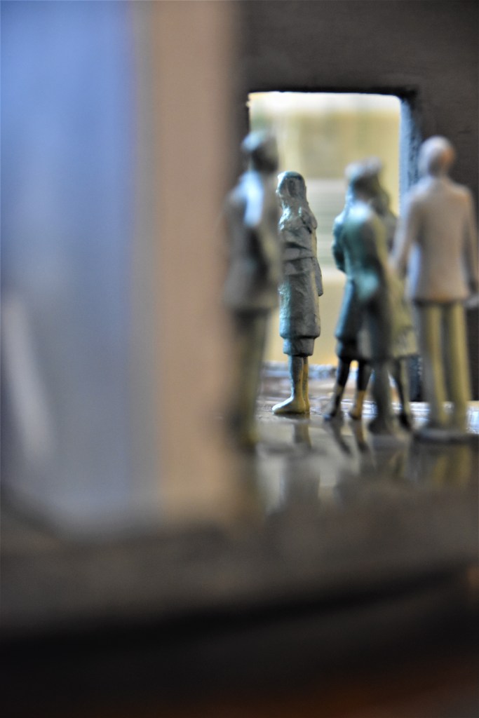This image is from a long form video work that is one of the components in an upcoming installation. Here anonymised individuals with their face fully or partially hidden from facial recognition software queue for who knows what.