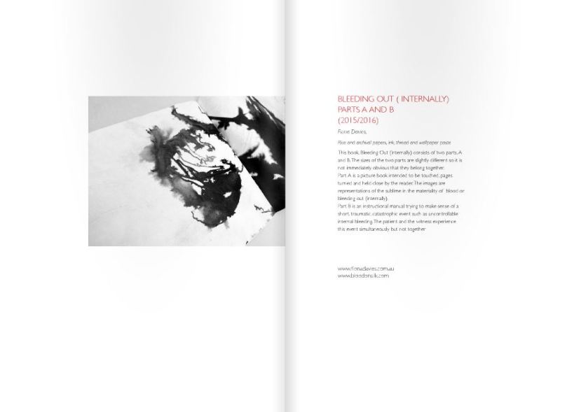 This book, Bleeding Out (Internally) consists of two parts, A and B. The sizes of the two parts are slightly different so it is not obvious that they belong together. Part A is a picture book intended to be touched, pages turned and held close by the reader. The images are representations of the sublime [...]