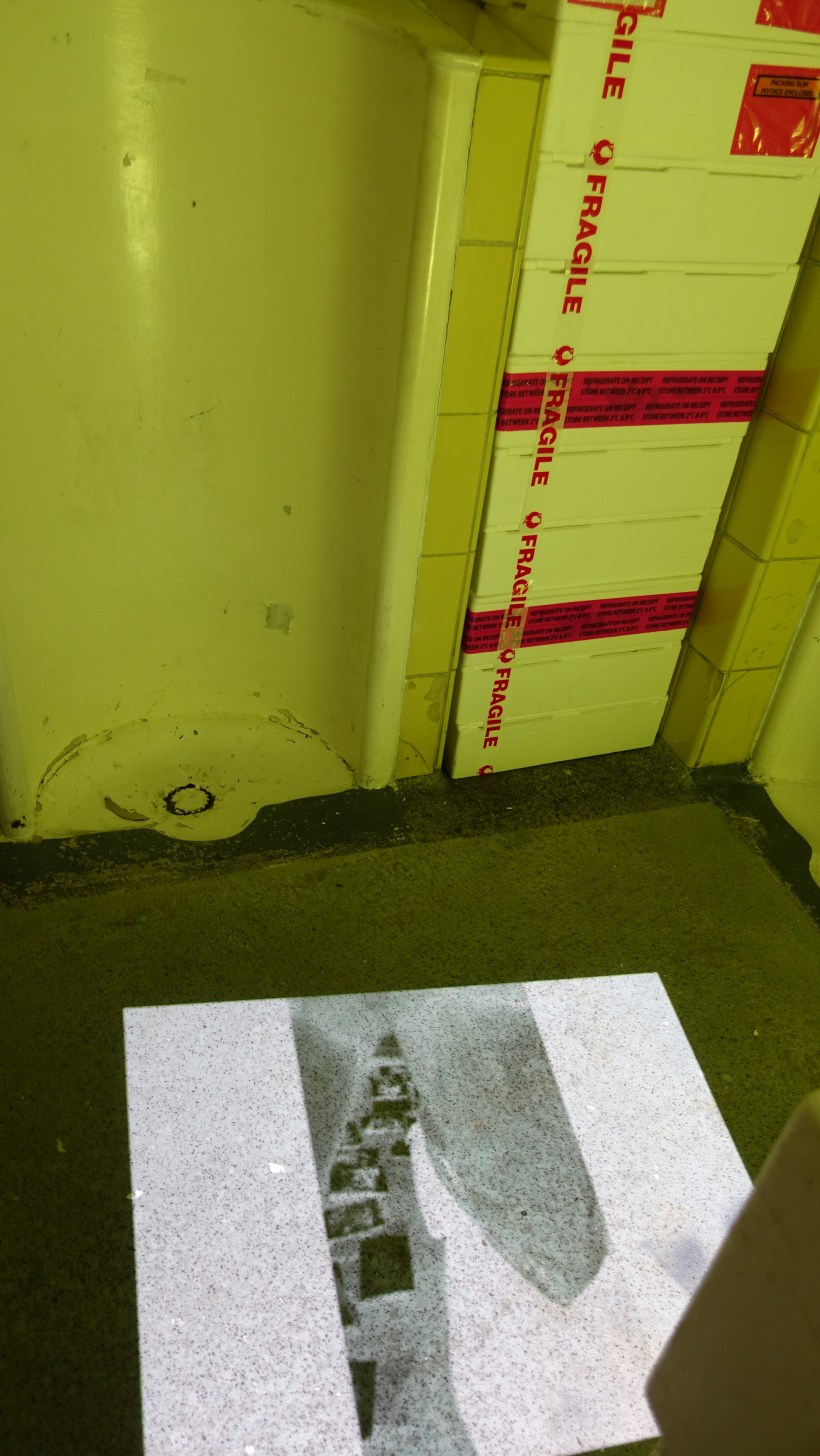 The third video night at Das KloHäuschen was the showing of a video shot last week on a public holiday when the market was clean, apparently abandoned and quiet. A solitary delivery truck performed for the camera doing a simple and beautiful U-turn. This curve outward towards the camera was projected into the urinal whose [...]