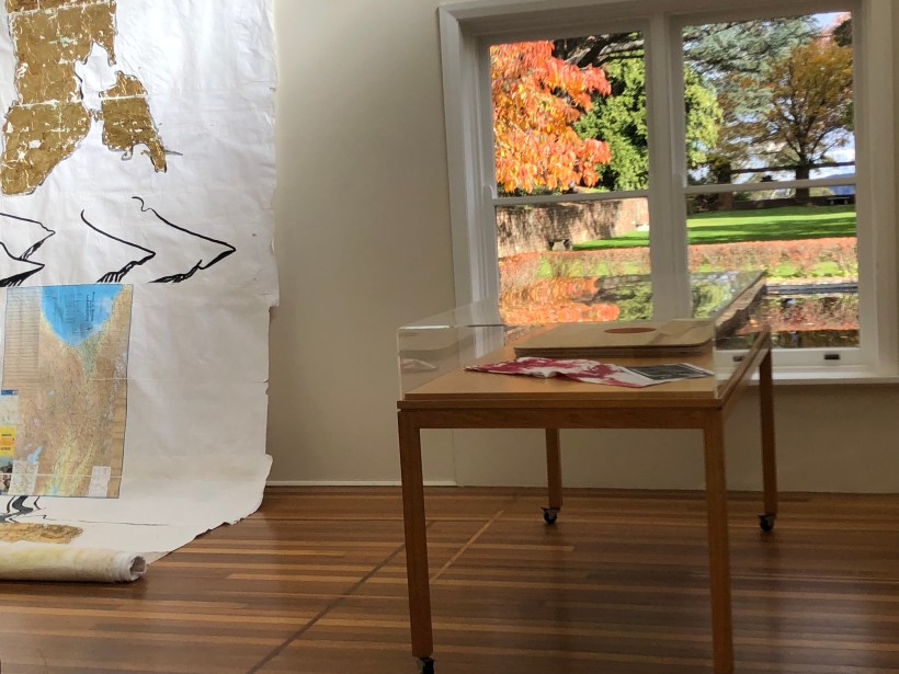 rice and other papers, gold leaf, wood, paint, silk paper and cloth, 2014 and 2023 1800 x 30 x 30cm in rolled format 1800 x 10200 x 30 'The project 'Blood on Silk ' was started in 2010 with the collaboration between Fiona Davies and the physicist the Late Dr Peter Domachuk. Peter was researching [...]
